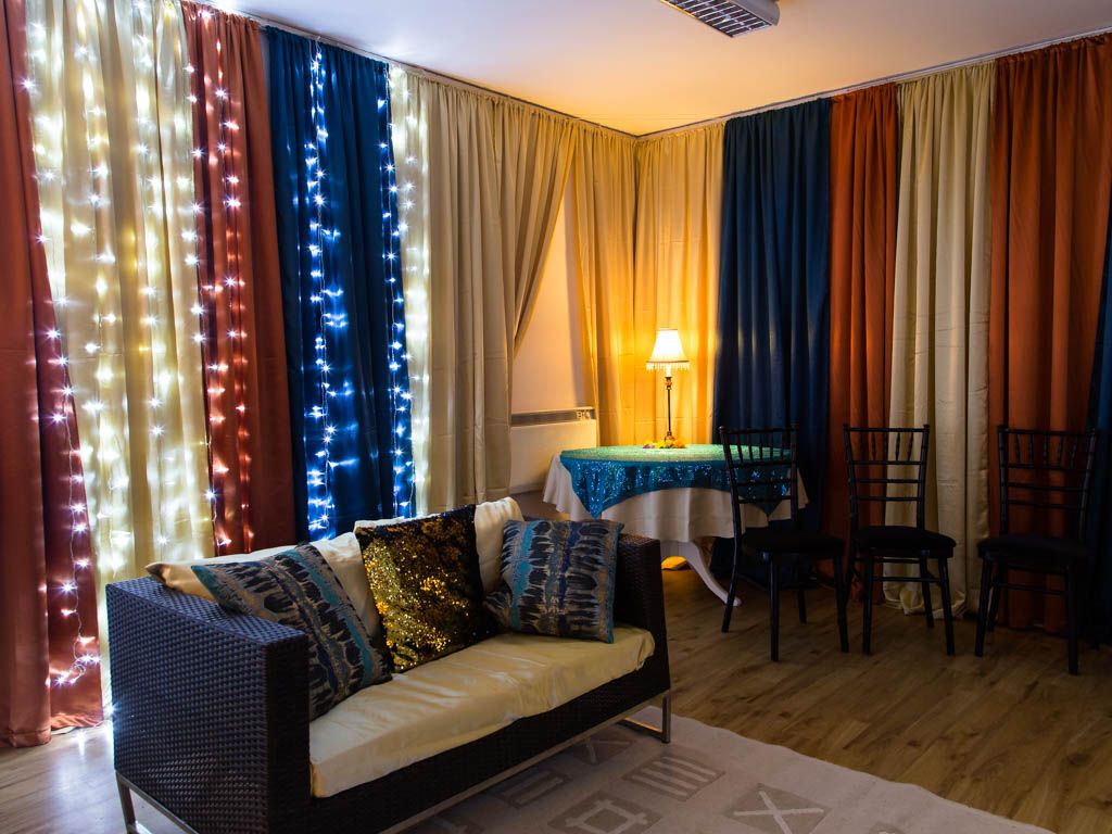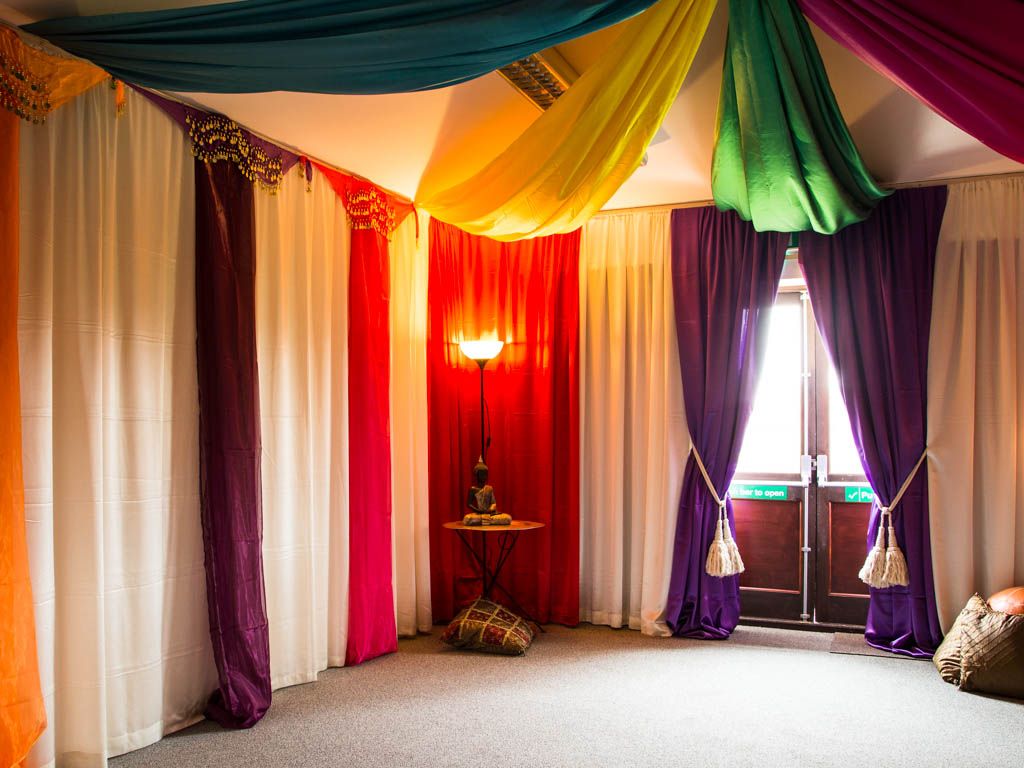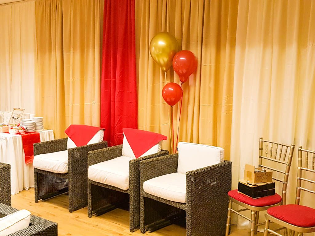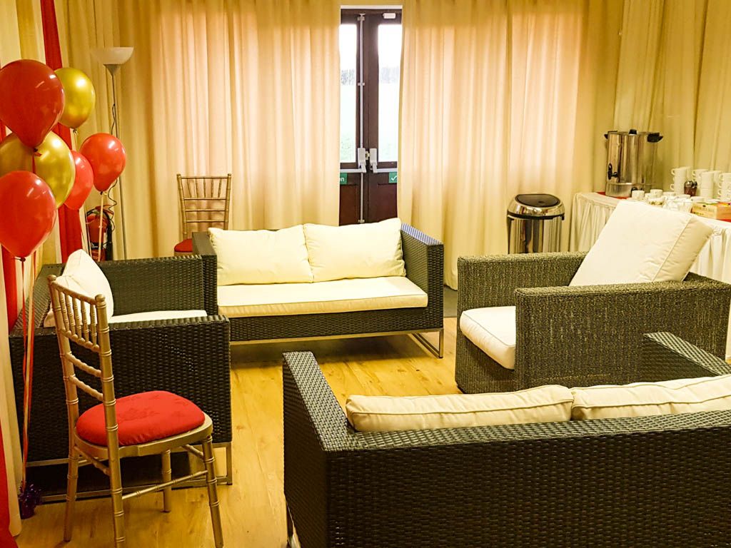 a "quiet" area during parties and weddings, bring in chairs or safas or use accessories available to hire with the hall